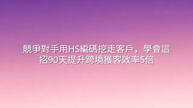 你的競爭對手正用HS編碼挖走你的客戶——這不是危言聳聽。學會把冷冰冰的六位數字變為商業情報引擎,90天內提升跨境獲客效率5倍以上。