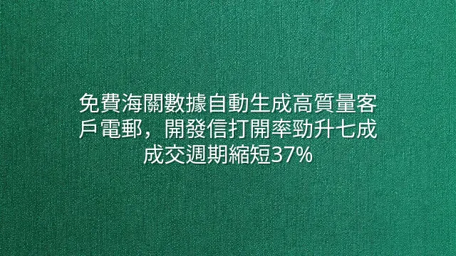 免費海關數據唔再係冷門工具——頂尖外貿團隊靠佢自動「生」出高質量客戶電郵。學識呢招,你嘅開發信打開率勁升七成,成交週期縮短37%。
