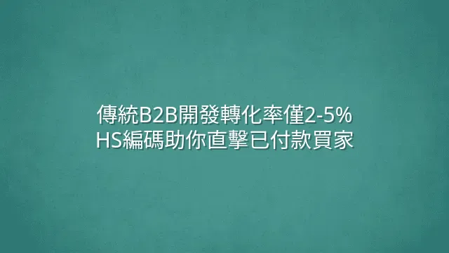 BLUF:HS編碼不只是通關工具,更是B2B企業實現精準營銷的隱藏武器。透過分析貿易數據中的HS編碼,企業能快速識別並接觸高意向買家,大幅縮短銷售週期。