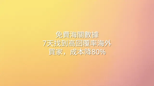 想找到真正有需求的海外買家?免費海關數據讓你不再盲目發信。透過真實交易紀錄,精準鎖定高潛力客戶並挖出決策者郵箱,