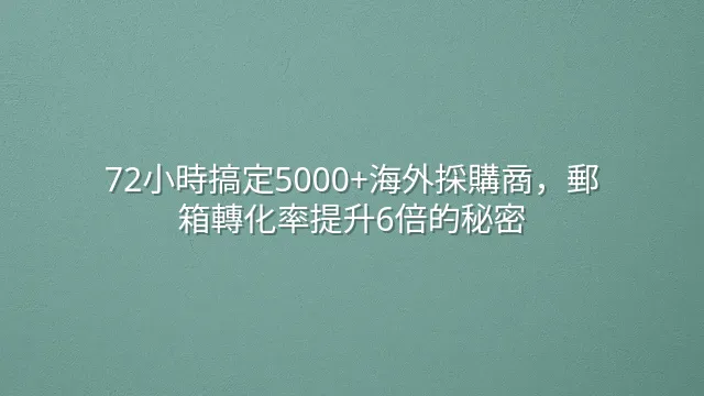傳統方式找海外採購商郵箱耗時又低效?真正高手用自動化系統,72小時搞定5000+高匹配度聯絡人。本文揭示從挖掘、驗證到轉化的完整商業閉環。