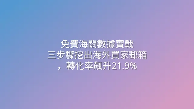 你不需要龐大團隊或百萬預算,也能打造一具24小時自動運轉的「競爭情報引擎」。關鍵在於將免費海關數據轉化為可執行的客戶開發系統,實現規模化獲客。