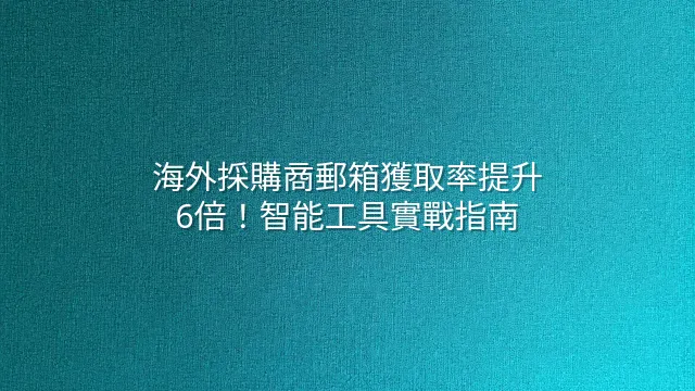 當競爭對手還在一筆筆手動搜尋海外買主時,你的第一封回信可能就在明天抵達——這不是假設,而是自動化採購商開發的真實節奏。根據2024年全球B2B行銷效率報告,採用系統化郵箱挖掘與驗證流程的企業,平均在72小時內觸及目標客戶的速度提升83%,轉化窗口大幅提前。