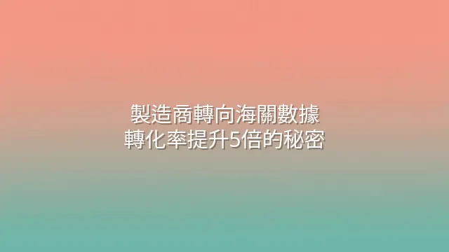 當你的競爭對手還在盲目發送開發信時,聰明的B2B製造商已經透過HS Code與貿易流向,精準鎖定正在擴產、換供應商的高潛力買家——這不僅是數據應用,更是搶佔市場份額的戰略窗口。錯過這一步,意味著每年可能流失30%以上的增量訂單機會。