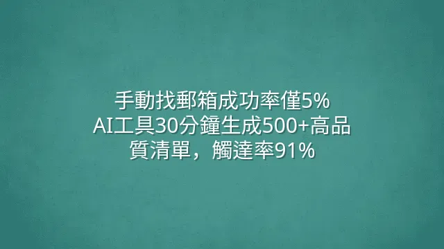 你不再需要在海量資訊中盲目摸索——現在的競爭優勢,來自於誰能更快、更準、更低成本地觸及決策者。接下來,你該問的不是「如何找郵箱」,而是「如何系統化複製成功案例?」