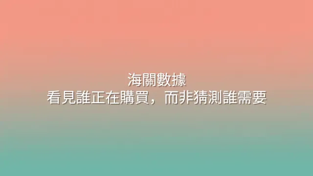 這正是海關數據能填補的關鍵缺口:它把模糊的「潛在客戶名單」,轉化為具時間性、規模與採購偏好的「高意願目標地圖」。你不再推測誰需要你的產品,而是看見誰正在購買類似產品,並預判其下一波替換或擴產計畫。