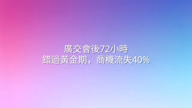 這72小時的本質,是將展覽投資兌現為現金流的最後一公里。錯過它,等於放棄已點燃的導火線。真正的競爭優勢,不在展位大小,而在數據流動的速度與精準度。