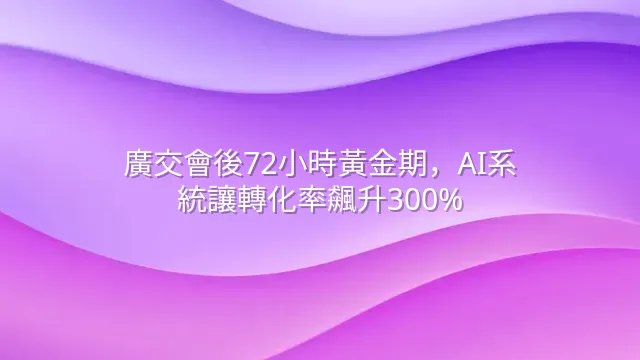 廣交會後即刻啟動結構化客戶挖掘流程,可將潛在客戶轉化率提升達300%。 數據顯示,85%参展企業錯失會後黃金72小時跟進期,導致商機流失。本文拆解一套AI輔助的深度名單分析與自動化跟進系統,助你搶佔市場先機。