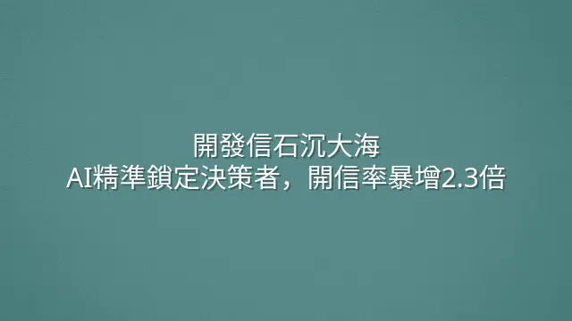 大多數企業花大把時間蒐集海外買家郵箱,結果郵件不是進垃圾筒,就是由初級人員掃過即刪。根據2024年全球B2B行銷基準報告,傳統方式觸及真正決策者的成功率不到5%。這不是溝通問題,而是資料品質的根本缺陷。