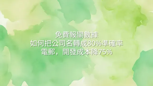 當你從報關資料挖出真實採購企業名單,下一步挑戰是如何把『公司名稱』變成『能聯繫上的決策者電郵』。傳統購買名單成本高昂且準確率低於40%;現在結合公開報關數據、域名資料庫(如 WHOIS)與自然語言模型,我們可以智能重建企業個人電郵,準確率突破80%。