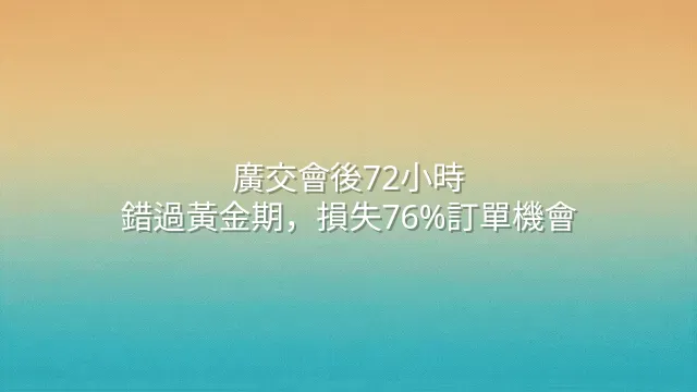 80%的參展商在廣交會結束後兩週內失去與潛在買家的聯絡熱度——這是2024年《中國國際貿易展會效能報告》的真實數據。你辛苦建立的現場關係,正以每日10%的速度冷卻;成交週期平均延長47天,ROI直接蒸發近三分之一。
