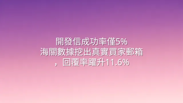 某香港電子零件商結合「海關紀錄+MX解析」雙重篩選,先確認企業仍在活躍進口,再清洗郵箱格式與有效性。結果驚人:冷郵件回覆率從2.1%躍升至11.6%,等於每9封信就有1封獲得實質回應。這不只是數字提升,而是CRM投資報酬率放大近六倍。