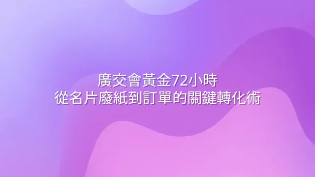 廣交會結束後的72小時,是搶佔買家心智的黃金時機。錯過這段時間,名片就會從商機變廢紙。即時結構化資料、精準分級、自動化觸接——三大關鍵動作決定你能否把人流變現為訂單。