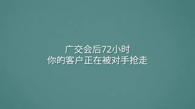 超过68%的参展商在广交会结束后一周内没发出第一封跟进邮件——这不只是拖延,是直接烧掉潜在订单。2024年亚洲贸易展会后续效益调查指出,这种延迟平均让企业损失15万美元以上,相当于全年出口增长目标蒸发近三成。