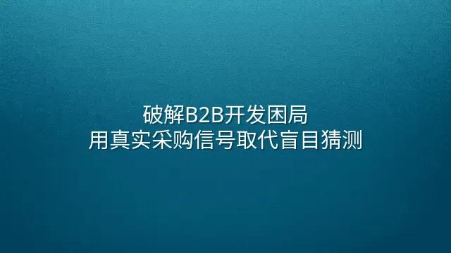 你投的展会费、目录广告、外勤拜访,多数只是陪跑比价。更糟的是,采购权正从总部下放到区域中心甚至跨部门小组。去年有效的联系人,今年可能连岗位都没了。静态名单营销不仅效率低,还会让你误判战场:你以为在拼价值,其实连入场券都没拿到。